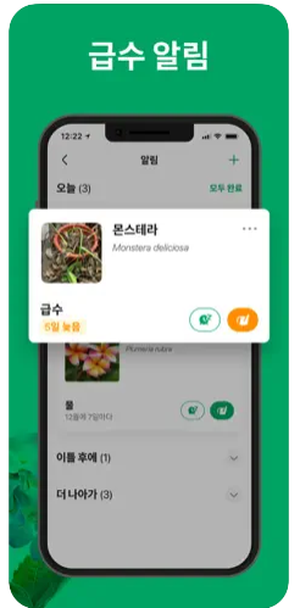 또한 식물마다 물 주는 알림을 설정할 수 있어, 바쁜 일상 중에도 식물 관리를 놓치지 않게 도와줍니다. 특히 여러 개의 식물을 동시에 관리하는 사람에게는 아주 효율적인 기능입니다.